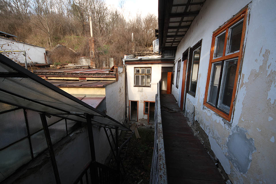 Kamenná zeď předzahrádky kdysi spadla do úzké Královpolské uličky, která se šplhala vzhůru do kopce ke Staré Tišnovce.